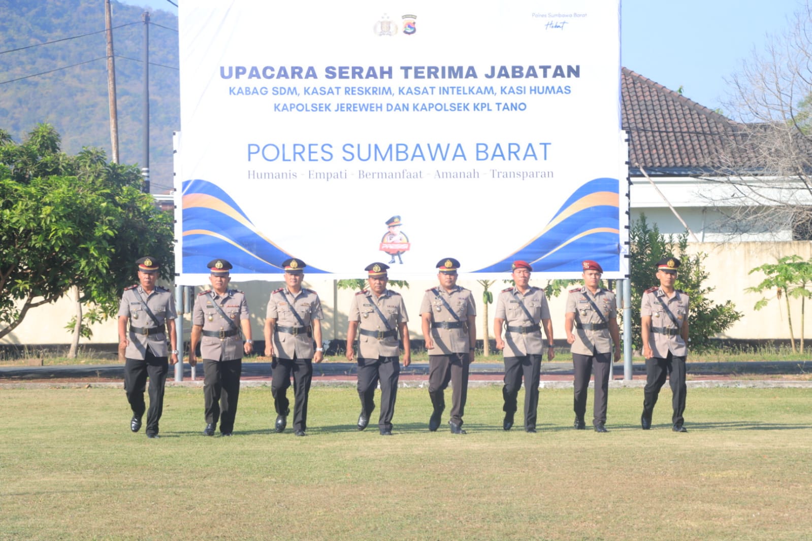 Upacara Sertijab ini juga dihadiri oleh para pejabat utama Polres, perwira, serta Bhayangkari. Suasana berlangsung penuh rasa hormat dan kekeluargaan, menandai komitmen bersama dalam menjaga keamanan dan ketertiban masyarakat di wilayah hukum Polres Sumbawa Barat.