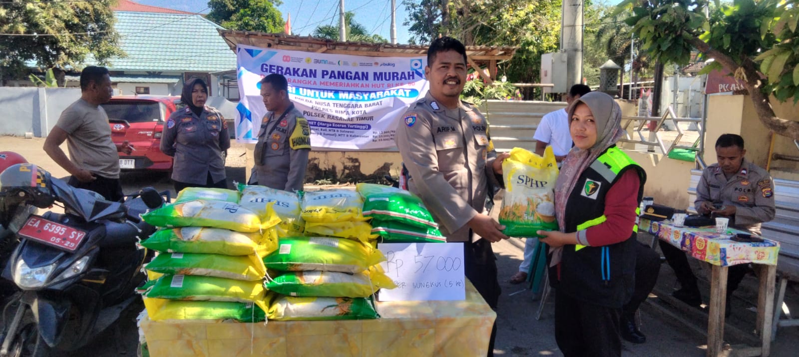 “Kegiatan ini diselenggarakan oleh Pemerintah Republik Indonesia melalui Kementerian Koordinator Bidang Pangan, Kementerian Pertanian, Badan Pangan Nasional, bekerja sama dengan Perum BULOG, BUMN, TNI, POLRI, serta pemerintah daerah. Ini adalah bentuk kepedulian pemerintah dalam memastikan pangan selalu tersedia, terjangkau, dan merata untuk masyarakat,” jelas Ipda Baiq Fitria.