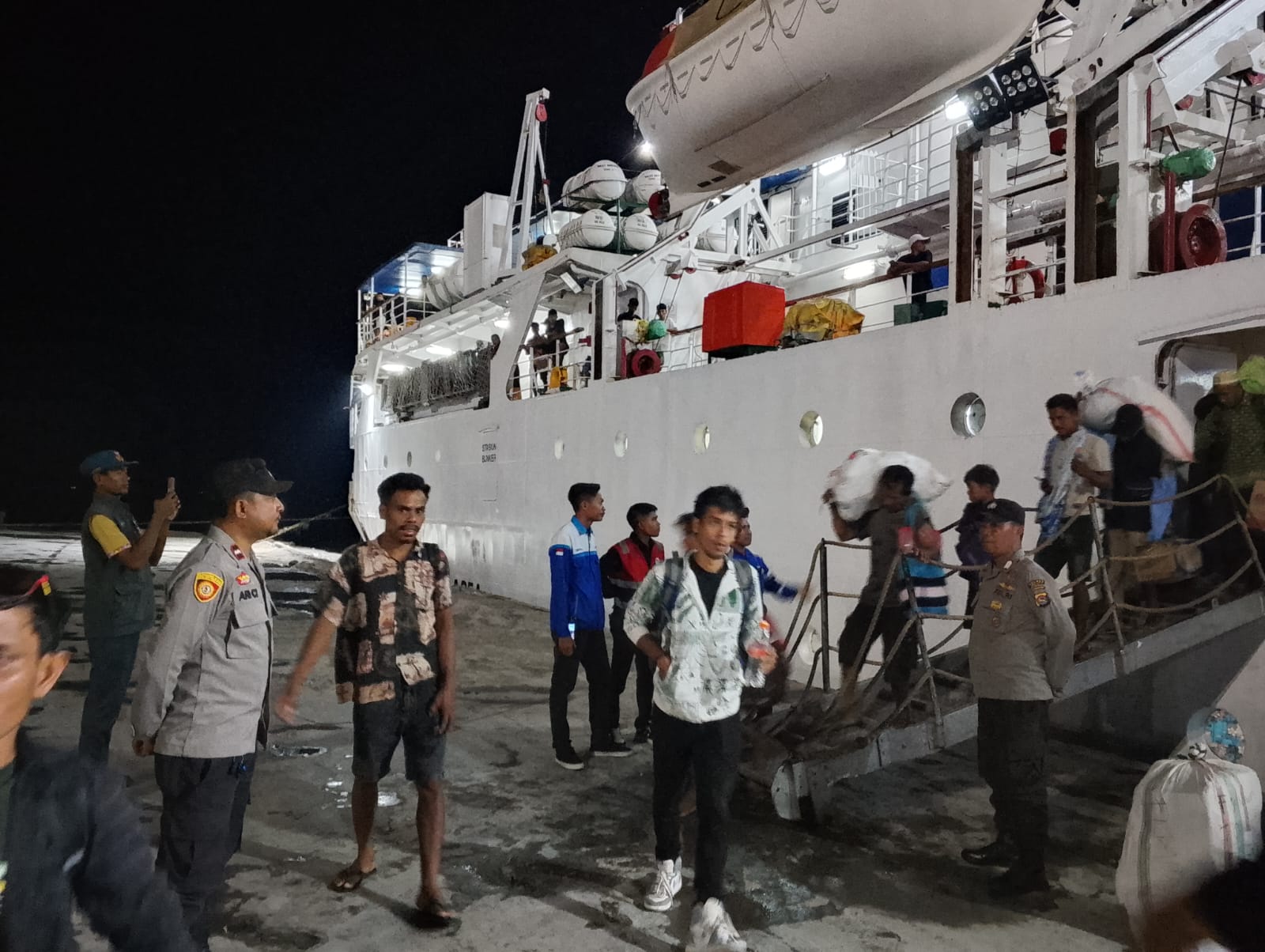 Kota Bima, NTB (3 November 2025) – Polsek Kawasan Pelabuhan Laut Bima melaksanakan kegiatan pengamanan terhadap kapal penumpang KM. WILIS yang melakukan proses embarkasi dan debarkasi di Pelabuhan Bima, Jalan R.E. Marthadinata, Kelurahan Tanjung, Kecamatan Rasanae Barat, Kota Bima, pada Minggu malam (2/11/2025) sekitar pukul 19.00 Wita.